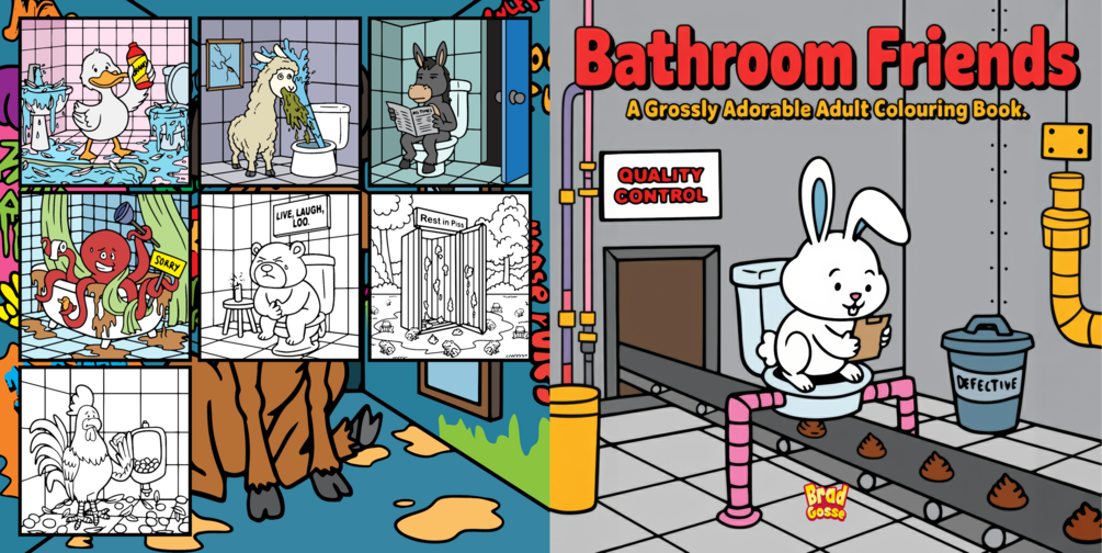 From the twisted mind of bestselling author Brad Gosse comes Bathroom Friends â a hilariously foul adult coloring book that combines cute animals with bathroom disasters so ridiculous, youâll wonder if youâre going to hell for laughing.